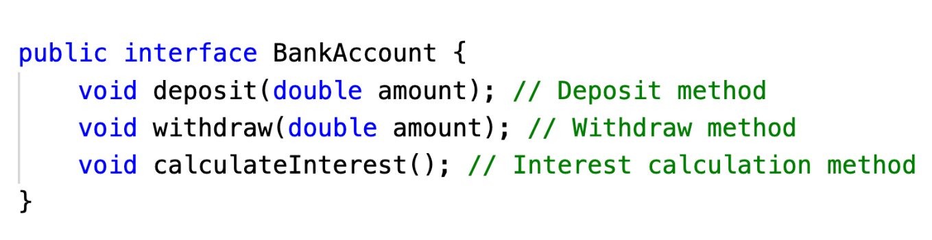 - Interfaces define abstract methods that must be implemented by any class that implements the interface.