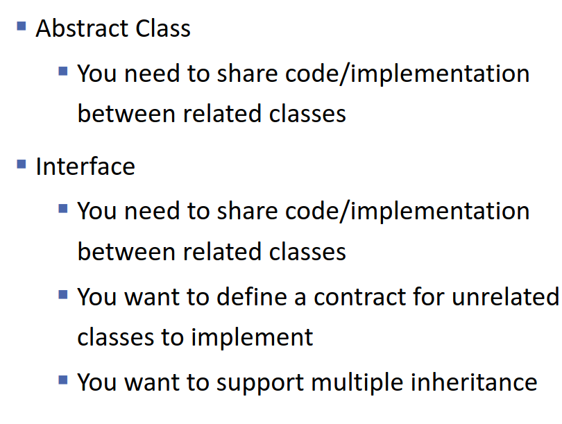 - Used when you want to provide a common base and allow subclasses to implement specific behavior.