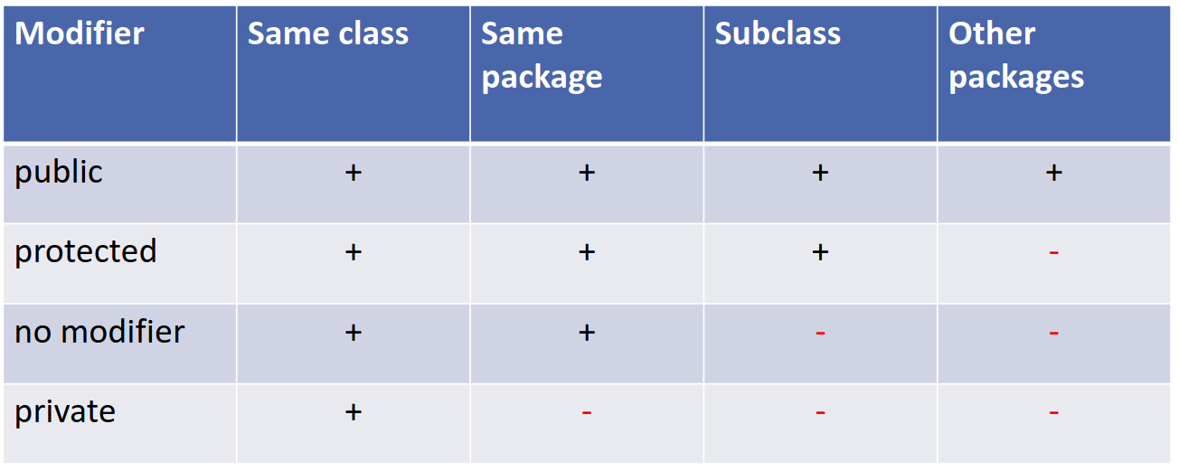- The method in the subclass must have equal or more accessible access modifier.